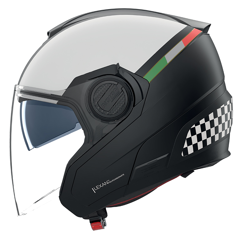 CASCO JET IN POLICARBONATO LEXAN CON VISERINO INTERNO PARASOLE Il mondo Urban firmato Nolan si colora di N40-5, l’intramontabile casco jet realizzato in policarbonato LexanTM ad alta resistenza che migliora l’esperienza del commuting cittadino, attraverso un casco che interpreta contemporaneità nel design e funzionalità con le sue peculiarità tecniche di fascia alta. Il comfort di N40-5 è garantito dagli interni Clima Comfort e dal sistema di areazione superiore che mantiene la temperatura costante e piacevole in ogni condizione meteo. Lo stile essenziale si evolve grazie ad una ricercata palette colori in tinta unita che ne determina una destinazione decisamente urbana.